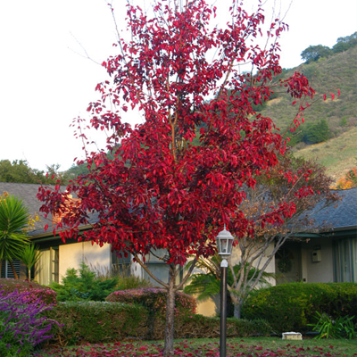 The Flowering Ornamental Pear (Pyrus calleryana) is ideal if you’re trying to achieve a strong, seasonal color. Flowering Pear Trees keep their deep green foliage for most of the year along with those beautiful white flowers from spring to summer. Perhaps the most desirable aspect is the fiery-red fall color that Flowering Pear Trees gain in the fall.