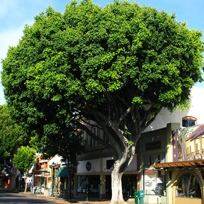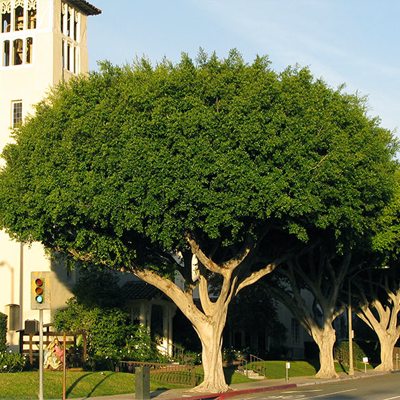 The Indian Laurel Fig (Ficus microcarpa nitida) thrives in the mild coastal climates and in the hottest of desert environments, providing a lush green appearance into even the most water stingy landscapes. Deep water while young establishes a strong root system able to withstand the most stringent water restrictions.